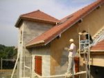 27 juin 2005, par LaurentLe crépi a commencé le vendredi 24 juin. En une journée à 4 personnes, la façade arrière, le pignon et l’avant du garage ont été terminés.